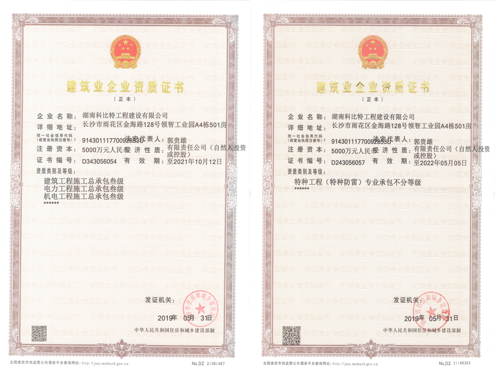 荣获建筑电力机电工程施工总承包叁级资质,特种防雷资质