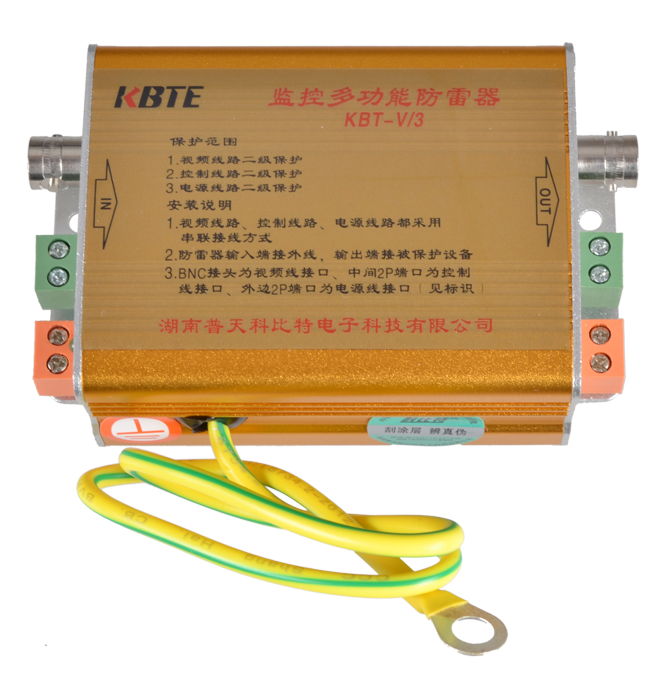 三合一监控多功能防雷器用于带云台摄像机,RJ45接口的监控多功能防雷器用于网络摄像机和高清摄像机,保护摄像机的电源、视频及控制线路免受雷击和过电压的损害。监控多功能防雷器安装在监控系统前端的摄像机尾部,位置与摄像机越近越好,原则上0.5M距离内,并做好接地处理。